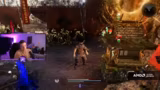 05:51:12Nach Abschluss des Godrun-Projekts plant der Streamer, Nioh 3 für einige Tage zu spielen, ohne Zeitdruck. Er erkundet eine Area, die für sein Level zu hoch ist, um sich durch das Besiegen starker Gegner aufzuwerten. Dabei stellt er fest, dass seine aktuelle Ausrüstung unterlevelt ist und weniger Schaden verursacht. Er beschließt, die Ausrüstung aufzuwerten und sucht nach Möglichkeiten, Items beim Schmied zu verbessern, um seine Kampfkraft zu erhöhen.