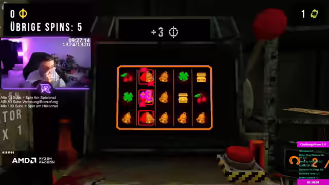 03:04:22Es herrscht Verzweiflung angesichts der Herausforderung, in nur zwei Runden ein bestimmtes Ziel zu erreichen. Der Streamer fühlt sich in eine Ecke gedrängt und sucht nach Möglichkeiten, das Blatt noch zu wenden. Dabei werden verschiedene Fähigkeiten und Items in Betracht gezogen, darunter das Megafon, um zusätzliche Vorteile zu erzielen. Es wird jedoch festgestellt, dass die benötigte Punktzahl von 12.000 kaum erreichbar ist. Trotzdem wird nicht aufgegeben, sondern weiterhin nach Wegen gesucht, die Gewinnchancen zu erhöhen. Es wird überlegt, ob es sinnvoll ist, auf Kirschen zu setzen, da eine hohe Chance auf Kirschen besteht und der Jackpot benötigt wird. Die Situation wird als schwierig eingeschätzt, aber der Streamer gibt sich kämpferisch und versucht, das Beste aus den verbleibenden Möglichkeiten zu machen. Es wird überlegt, ob Glocken und Kleeblätter eine bessere Option wären, aber letztendlich wird die Entscheidung getroffen, auf Kirschen zu setzen.