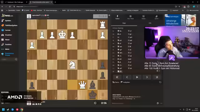 11:52:14 Hey Michi, wir haben ein Problem und zwar das gleiche wie letztes Jahr und zwar ich habe zu viele Challenges. Wäre es möglich für mich persönlich ein bisschen mehr als 70 zu machen? Das wäre super cool. Ansonsten würde ich einfach die, die ich fertig habe, rauslöschen. Danke dir. Ne, es geht leider nicht. So, wir holen erstmal direkt einen Schach, wenn ja? Direkt mal einen Schachsieg, ja?