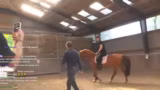 03:14:06Endlich sitzt der Streamer auf dem Pferd Niki. Er erhält vom Trainer wichtige Anweisungen zur Haltung, zum Halten der Zügel und zur Balance. Niki geht sofort im Trab, was für den Anfänger eine enorme körperliche Anstrengung bedeutet und seinen Rücken und seine Beine stark beansprucht. Er hat die Angst, das Pferd nicht kontrollieren zu können, findet aber auch Spaß an der Fahrt.