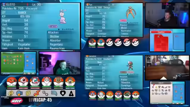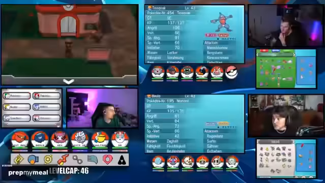 01:01:34Ein entscheidender strategischer Aspekt wird klar: die Verwaltung der Pokémon-Level. Die Streamer beschließen, das maximale Level auf 42 zu begrenzen, um einen fairen Kampf gegen den nächsten Arenaleiter zu gewährleisten, dessen Team höher ist. Dies erfordert eine sorgfältige Planung und den ständigen Austausch von Pokémon, um optimal aufgestellt zu sein und die Vorteile der verschiedenen Teams voll auszuschöpfen.