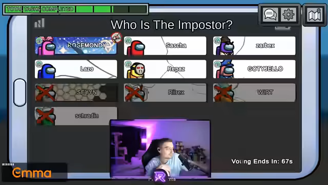 01:27:08Es wird überlegt, wer den Code in Admin eingegeben hat und wer in der Nähe des Kills war. Es wird eine Beobachtung geteilt, dass Sane in Weapons war, aber keine Animation gezeigt wurde. Es wird spekuliert, dass es sich um einen Self-Report handeln könnte. Es wird überlegt, wer den Kill nicht gemacht haben kann. Es wird diskutiert, wer in Camps war und wer Micky gekillt haben könnte. Es wird überlegt, Zane zu voten oder zu skippen. Es wird kritisiert, dass zu spät geskippt wurde. Es wird festgestellt, dass Rose in Communications war und die Leiche in Storage liegt. Es wird überlegt, wer mit dem Wirt von Cafeteria Richtung Edmund Storage gelaufen ist. Es wird diskutiert, wer in der ersten Runde Zass war. Es wird überlegt, wer den ersten Kill gemacht haben könnte. Es wird festgestellt, dass Zabex auf Sane gegangen ist. Es wird überlegt, ob Elie der Imposter ist. Es wird überlegt, ob man den Kill Navigation schaffen kann. Es wird diskutiert, welche Route Rhyrex gegangen ist. Es wird überlegt, ob Schradin den Kill bezeugen kann. Es wird überlegt, wer von Lazzo und Rhyrex der Imposter sein könnte. Es wird überlegt, Lazzo rauszuwählen. Es wird kritisiert, dass Schadin den Knopf drückt. Es wird überlegt, ob man einen Redeball hat. Es wird überlegt, ob Micky schon zassen war, als das Licht aus war. Es wird überlegt, ob man Schardin wählen soll, um ein 2-2 zu erreichen.