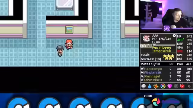 02:28:29Die Vorbereitung für den Arenaleiter beginnt, wobei der Streamer sein Inventar organisiert. Er beschreibt den Prozess, Items wie TMs und Heilungsmittel zu priorisieren, und stellt fest, dass er vor allem mehr Status-Items benötigt. Es wird diskutiert, welche Pokémon die größten Bedrohungen in der Arena darstellen, und der Streamer plant, mit extrem schnellen Attacken wie Extreme Speed zu agieren, um Gegner schnell auszuschalten.