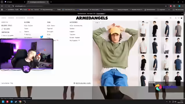08:38:14Der Streamer kündigt eine Werbepartnerschaft mit der Kleidungsmarke Armed Angels an und präsentiert deren aktuelle Frühlingssammlung für Damen und Herren. Er erwähnt, dass die Marke nachhaltige Materialien verwendet und faire Preise bietet, und bewirbt seinen exklusiven Rabattcode 'Rhyrex' für 15% Rabatt auf Bestellungen über 50 Euro, inklusive kostenlosem Versand beim Newsletter-Abonnement. Er stellt persönlich ausgewählte Kleidungsstücke vor und erläutert seinen persönlichen Stil.