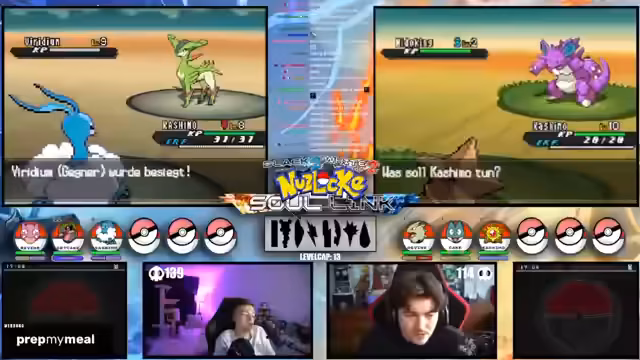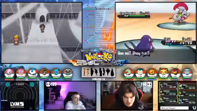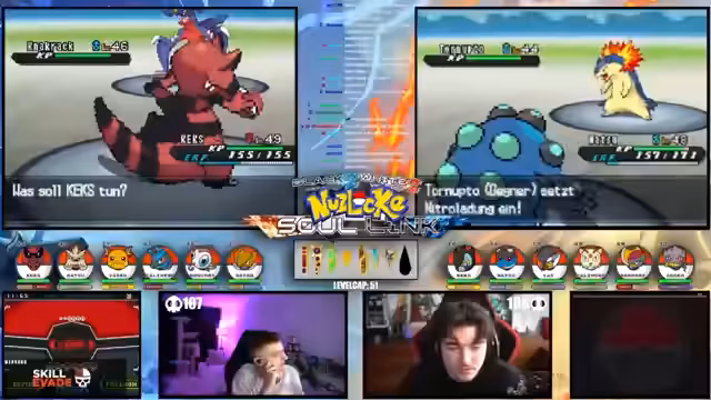 00:28:08Das Gespräch konzentriert sich auf die aktuelle SoulLink Nuzlocke-Challenge. Matzo analysiert sein Team, das aus Larry, Keks, Shae-Z, Pigami, Gaucho und Hixa besteht. Er kritisiert seine eigenen Fehler, als er ein ganzes Team in einen Kampf schickt, der als 'in die Wand gefahren' beschrieben wird, und zieht die Konsequenzen für seine zukünftige Teamzusammenstellung. Er zeigt Enttäuschung über die Leistung und denkt über seine Taktik nach.