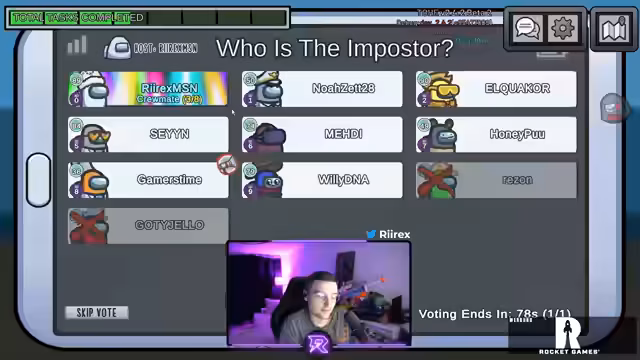 02:00:42Ein Vote gegen Noah wird durchgeführt, obwohl einige Spieler Noah für sicher halten. Der initiator des Votes ist sichtlich frustriert über den Ausgang und die aus seiner Sicht falsche Entscheidung der Mehrheit. Es werden Zweifel an der Richtigkeit des Votes geäußert und ein möglicher Bug im Spiel angedeutet, da die Stimmenverteilung nicht mit den Erwartungen übereinzustimmen scheint. Die Diskussion entzweit die Spieler kurzzeitig.