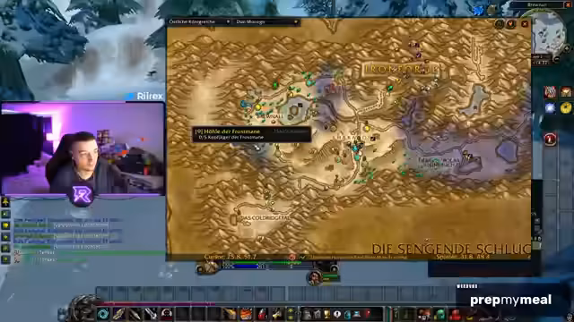 05:03:46Der Streamer äußert seine Neugier auf Gerichte wie Klöße oder Frikadellen und berichtet über eine Bestellplattform. Er stößt auf Frustration, da griechische Gerichte oft bevorzugt werden, und beginnt mit dem Gameplay von World of Warcraft, wobei er einen Jäger als Klasse wählt und sich über die anfänglichen Schwierigkeiten äußert.
