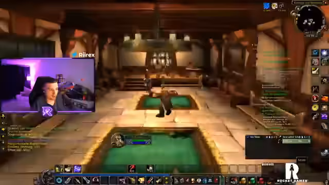 14:57:39Nach langem Grinden erreicht der Streamer den Level 15 und schließt damit die laufenden Quests erfolgreich ab. Er ist dankbar für die Hilfe des Chatters Tobi und lockt sich aus, um in seinem Gasthaus in Sturmwind sicher zu sein. Die nun folgende Aufgabe ist die Findung einer vollständigen Gruppe für den Dungeon Deadmines. Man entscheidet sich für den Kompromiss, mit einem Level 18 Tank (No Way) und einem Paladin als Healer zu starten, trotz der geringen Erfahrung des Tanks.