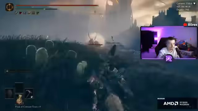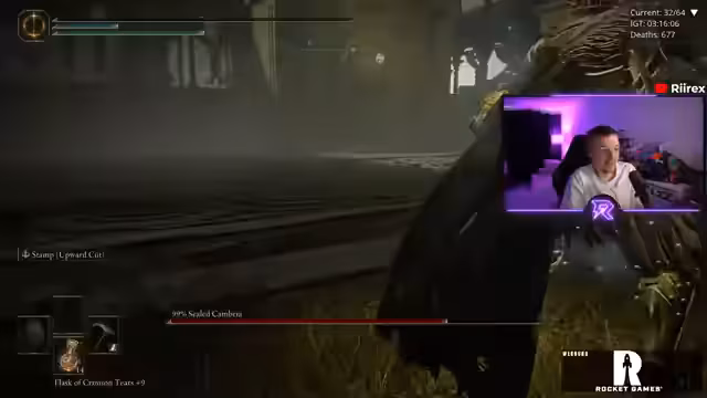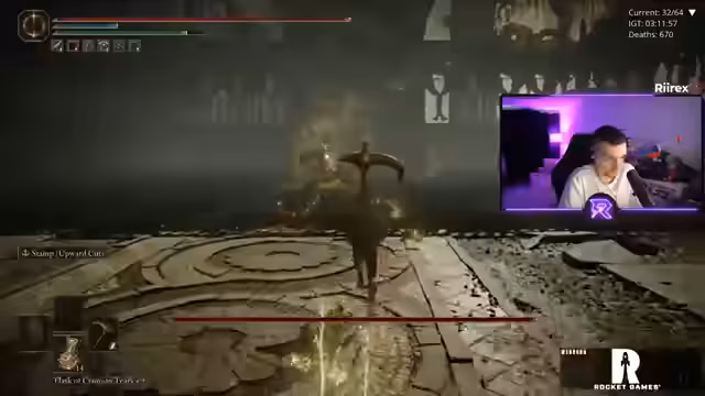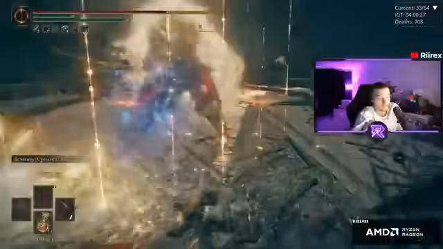 00:23:11Der Streamer entwickelt eine Strategie, um Prime Radan auf der Brücke zu besiegen oder zu umgehen. Er erkennt, dass Prime Radan mit einer bestimmten Attacke, die einen AOE-Angriff auslöst, die anderen Gegner töten kann, was ihm das Vorbeireiten ermöglichen würde. Nach mehreren Versuchen gelingt es ihm, Prime Radan zu despawnen und somit zu besiegen. Die nächste Herausforderung ist Gaius, den er ebenfalls umgehen oder besiegen muss. Später im Stream trifft er auf einen komplett neuen Boss, den er nicht kennt und der ihn mit einem Schlag tötet. Er muss den Boss lernen und 'no-hitten', was die Schwierigkeit enorm erhöht. Er bemerkt, dass der Boss verzögerte Angriffe hat und er nicht gierig sein darf, sondern reagieren muss. Die Lernkurve ist steil, und er muss sich an die Timings gewöhnen, um nicht 'one-hitted' zu werden.