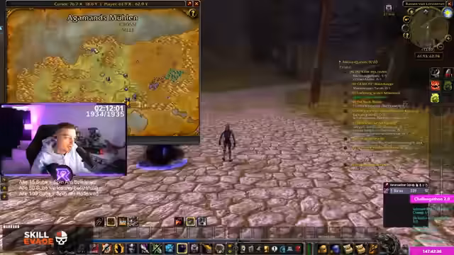 00:07:29Der Streamer befindet sich bereits auf Level 10 und muss Level 20 für den ersten Meilenstein der Challenge erreichen. Er spielt einen Hexenmeister zum allerersten Mal im Hardcore-Modus und betont die Konsequenzen: der Tod bedeutet das Ende des Charakters. Er ist sich unsicher über die Spielmechaniken, wie die sichere Nutzung von Zeppelinen, stellt aber fest, dass sein Haustier ein 'Tank' ist, der durch seinen Taunt-Fähigkeit das Spiel massiv vereinfacht und es ihm ermöglicht, mehrere Gegner gleichzeitig anzugreifen.