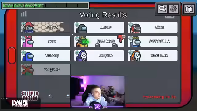 11:25:15In der entscheidenden Phase der Stream werden Voting-Strategien heftig debattiert, besonders im Kontext der Player-Anzahl. Spieler wie Tim, Musti und Eldos werden verdächtigt und es kommt zu einem Chaos, in dem mehrere Votes gleichzeitig gefordert werden. Es wird über die Regeln diskutiert, wann ein Vote notwendig ist – etwa bei sechs Spielern mit zwei Impostors, um Verluste zu verhindern. Die Konversation zeigt die hohe Spannung und den Druck, in den letzten Minuten korrekte Entscheidungen zu treffen, während gleichzeitig Fehler gemacht werden, die die Runde entscheiden.