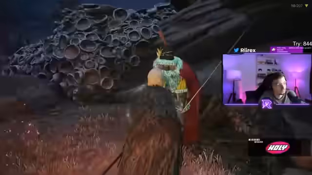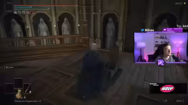 06:29:50Der Streamer scheitert an einem Run aufgrund von overpowered DLC-Gegnern und äußert seinen Frust darüber. Er freut sich über einen erhaltenen Schmiedestein 3, obwohl dies ungewöhnlich ist. Es wird über das Finden der Dragon Hunter Great Katana und die dafür passenden Icons diskutiert. Eine Diskussion über die Farbe Dunkelblau entsteht, wobei der Streamer argumentiert, dass es Dunkelblau bei Licht nicht gibt, während der Chat anderer Meinung ist. Es wird festgestellt, dass im aktuellen Spielabschnitt PK und Malenia direkt nebeneinander als Bosse warten. Der Streamer erwähnt, dass er bereits fünf Schwiffing Stones im Spiel gefunden hat und äußert erneut Frust über den Run-Verlauf. Es wird eine Wette erwähnt, die der Streamer verloren hat.