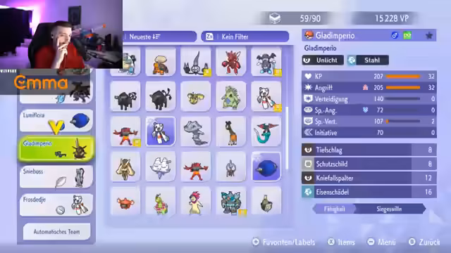 02:37:39Der Streamer beginnt, sein Team weiter zu optimieren, indem er verschiedene Pokémon-Kombinationen und -Strategien ausprobiert. Er diskutiert die Vor- und Nachteile von Pokémon wie 'Gladi Empirio' und 'Elfhuhn' und wie sie in seinem Team funktionieren. Zudem wird über die Item-Bestückung (z.B. Wahlband für Knackrack) und Fähigkeiten gesprochen, um das Team wettbewerbsfähiger zu machen. Der Fokus liegt auf der Erstellung eines ausgewogenen Teams mit starker Offensive und Defense.