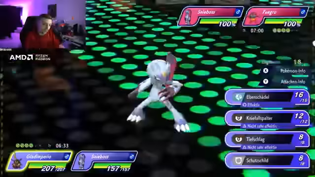 03:04:11Nach einigen anfänglichen Rückschlägen gelingt es dem Streamer, mehrere Kämpfe mit seinem neuen 'God-Team' zu gewinnen. Er ist mit der Performance seiner zentralen Pokémon wie 'Knackrack' und 'Gladi Empirio' zufrieden und gibt Einblicke in die taktischen Entscheidungen, die zum Sieg geführt haben. Der Streamer plant, das Team weiter zu verfeinern und eventuell weitere Pokémon wie 'Knack-Klack' hinzuzufügen, um es noch stärker zu machen.