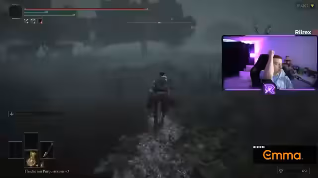 12:04:20Der Streamer wendet sich dem Spiel Elden Ring zu. Er äußert seine tiefe Frustration über die unfairen, nicht angepassten Stufen der DLC-Gegner, die sich nicht auf die grundlegende Spielmechanik beziehen können. Die Kämpfe sind für ihn desorientierend und fühlen sich unfair an, da er sich nicht heilen kann und unterlegen ist.