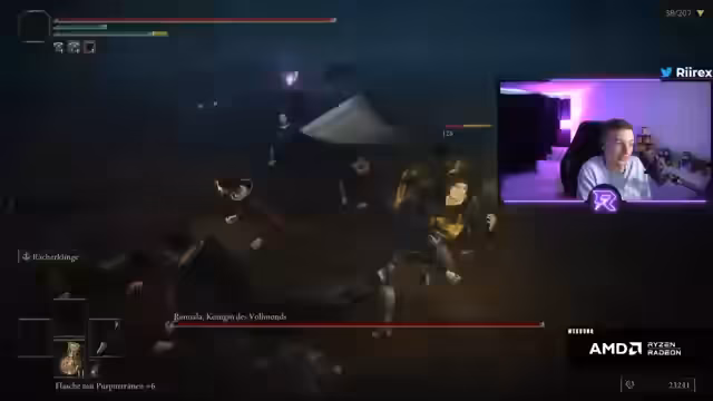 13:03:56Der Fokus liegt auf den aktuellen spielmechanischen Schwierigkeiten. Der Streamer kämpft gegen nervige Gegner, die in Gruppen agieren und ihn ausmanövrieren. Ein schwerer Fehler führt zum Tod und dazu, dass alle gesammelten Runen verloren gehen. Dies führt zu Frustration, aber auch zu Lernmomenten, wie das Ausschalten von Gegnern vor dem Bosskampf. Der Streamer reflektiert über seine Ausrüstung und verbessert seinen Charakter durch den Kauf eines Fingersiegels, das ihm mehr Weisheit verleiht.