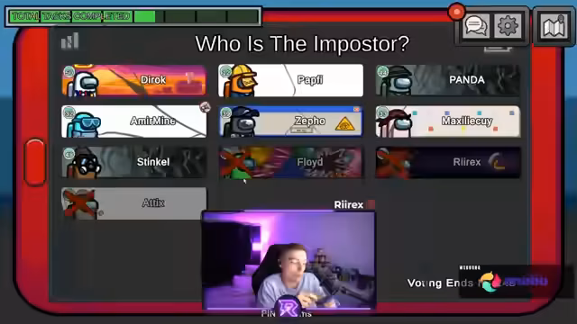09:54:32Ein Spieler wird in der Cafeteria getötet, und mehrere Spieler geben ihre Positionen an, um ihr Alibi zu festigen. Ein Spieler nam Amir gibt an, in der Cafeteria gewesen zu sein. Die Diskussionen konzentrieren sich auf die Verdächtigen Stinkel, Floyd und Pappi. D-Rock und ein weiterer Spieler bestätigen, bei Electrical gewesen zu sein, während die Spieler versuchen, die genauen Bewegungen der Verdächtigen zu rekonstruieren.