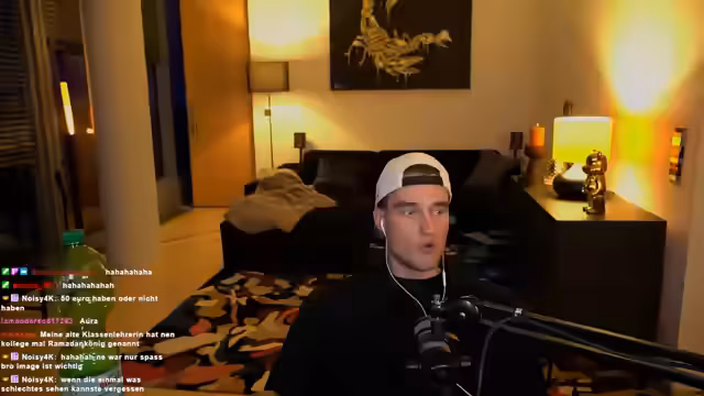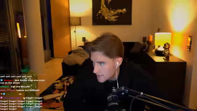 01:14:51Ein unvorhergesehener Zwischenfall sorgt für Aufregung, als der Streamer unabsichtlich Wasser trinkt und sich dabei nass macht. Er bittet die Zuschauer, das Ereignis zu clippen und den Clip in den Chat zu senden. Später ändert sich der Tonfall abrupt und dramatisch, als er explizit technische Unterstützung benötigt. Er bittet einen Zuschauer namens "Srever" um Hilfe bei der Einstellung auf Twitch, um zu ermöglichen, dass auch nicht-Follower im Chat schreiben können. Dieser Austausch gestaltet sich langwierig und frustrierend und eskaliert, bis der Streamer die Hilfe abrupt abbricht.