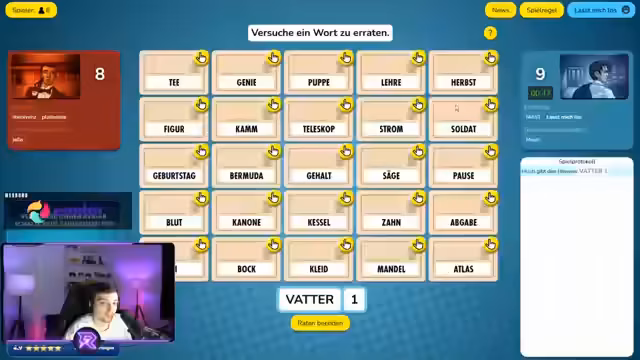 04:07:23Nach der emotionalen und hitzigen Runde von Among Us schlägt der Streamer einen Wechsel des Spiels vor. Um die Stimmung aufzulockern und etwas Neues zu spielen, wählt er Codenames. Er bittet alle verbliebenen Spieler, dem Spiel beizutreten. Die Gruppen für Codenames werden ausgelost und die Teilnehmer erklären sich bereit, gemütlich in das neue Spiel einzusteigen, das als willkommene Abwechslung dient und die aufgeregte Atmosphäre des vorherigen Spiels beendet.