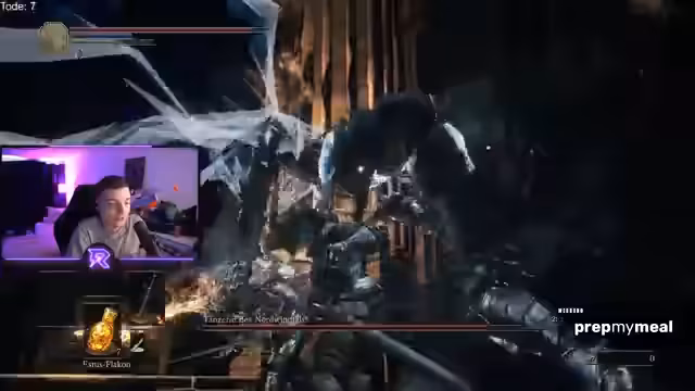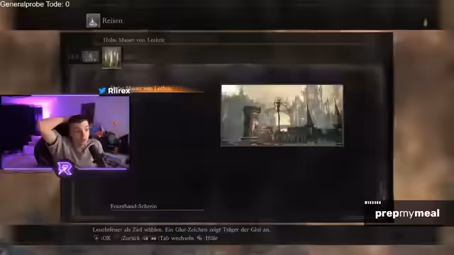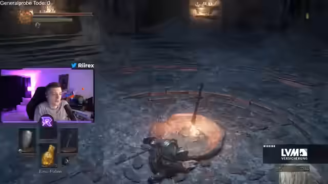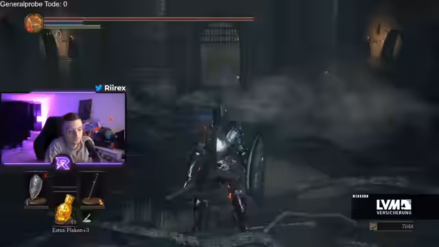 04:57:29Nach über fünf Stunden Streamzeit befindet sich der Streamer fast am Ende des Spiels. Er nennt die Bosse, die noch geübt werden müssen: Dancer, Aldrich, Pontiff und Dragonslayer Armor. Trotz seiner Erfahrung mit dem Spiel fühlt er sich bei manchen Bossen wie Lothric unsicher. Der Streamer gibt zu, dass er lange Zeit auf einem niedrigeren Niveau gespielt hat und spricht seine Angst vor zukünftigen Herausforderungen in Dark Souls 1 und Bloodborne.