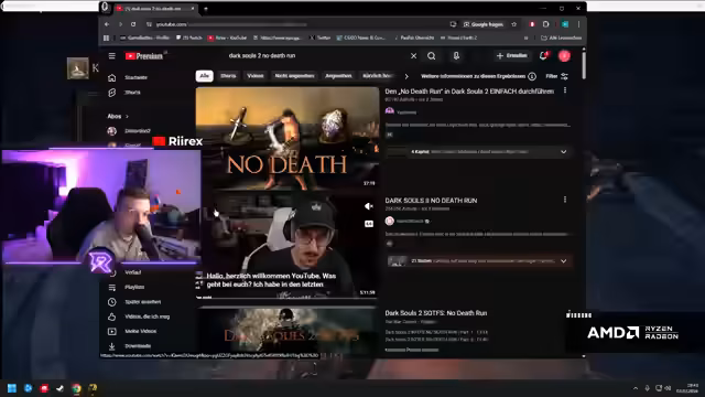 00:32:55Für den "No Death Run" in Dark Souls 3 hat der Streamer eine klare Strategie: Das Spiel soll durch das Sammeln von Overpowered-Items (OP) so einfach wie möglich gemacht werden. Der wichtigste frühe Boss ist die Tänzerin von Farron, die als erster potenzieller Run-Killer gilt. Da er den Kampf noch nicht beherrscht, unternimmt er intensive Vorbereitungen, indem er sich ein 3-stündiges No-Commentary-Video einer optimalen Route ansieht, um die Laufwege und wichtigen Items zu lernen.