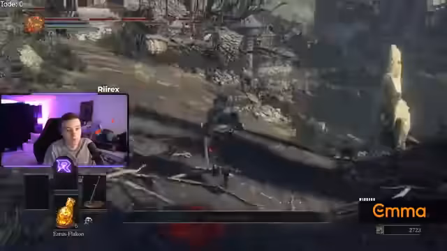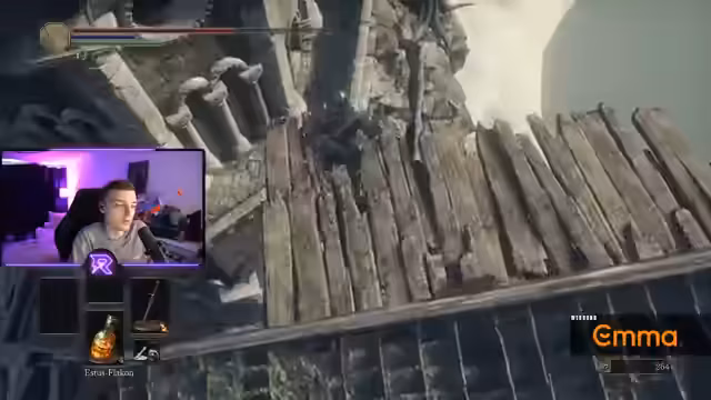 07:34:46Der Stream beginnt mit dem Beginn eines No Death Runs in Dark Souls 3. Es wird eine riskante Strategie verfolgt, sofort zum Boss zu laufen, ohne sich zu heilen oder volles Leben zu haben. Die anfängliche Ausrüstung wird optimiert, eine zusätzliche Heiltrank-Flasche hinzugefügt und eine Mana-Flasche entfernt. Der Streamer kritisiert Design-Entscheidungen von Elden Ring, wie das Notwendigmachen von Schmiedbesuchen für Upgrades anstatt Gnasten-Funktionen.