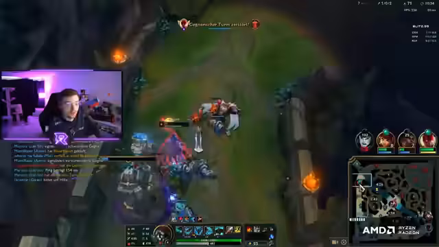 07:03:18Das Spiel beginnt intensiv mit frühen Ganks und Teamfights. Der Streamer wird früh von Kindred gegankt, was zu Frustration führt. Das Team versucht, den Drake zu sichern, während es gleichzeitig die gegnerischen Bewegungen beobachtet. Es kommt zu mehreren Engagements, bei denen Kills erzielt und Objectives wie Drakes gesichert werden. Die Kommunikation im Team ist entscheidend, um die Positionen der Gegner zu verfolgen und gemeinsame Entscheidungen zu treffen. Trotz einiger Rückschläge und verlorener Türme durch aggressive gegnerische Dives, versucht das Team, Schwachstellen des Gegners auszunutzen und gezielte Kills auf die Carry-Champions zu erzielen. Die Spieler reflektieren über ihre Fehler und versuchen, ihre Strategie anzupassen, um zukünftige Dives zu vermeiden und den Goldvorsprung des Gegners zu minimieren.