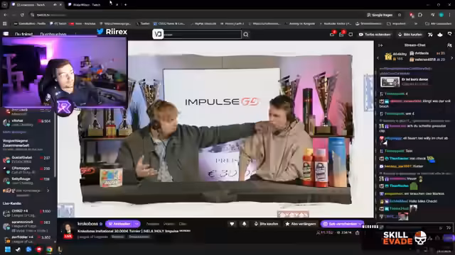05:28:54Nach einem weiteren Spiel wird ein neues Announcement gemacht: ImpulseGG, die Firma von Chef und Kuba, hat zeitgleich mit dem Turnier einen neuen Drop herausgebracht. Dieser ist auf der Website ImpulseGG.com erhältlich, wo man sich registrieren kann. Es wird ein riesiges Mauspad vorgestellt, das mit seinem Design und der Farbwahl gelobt wird. Der Streamer betont die Qualität der Produkte und die Motivation der Gründer. Zuschauer können mit dem Code KROKO20 20% auf das gesamte Sortiment sparen. Es werden auch Bundles mit Mauspads und Armsleeves angeboten, die besonders im Winter oder Sommer Vorteile bieten, indem sie Reibung reduzieren und die Hände warm oder kühl halten. Der Streamer empfiehlt die Produkte persönlich und erwähnt, dass das Mauspad wasserabweisend ist.