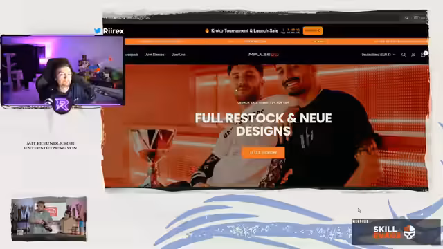 05:11:32Während des laufenden Streams treten technische Probleme auf, da der Ton des zweiten Laptops nicht funktioniert. Gleichzeitig wird eine Ankündigung für die Community gemacht. Das Unternehmen ImpulseGG hat zeitgleich zum Turnier einen neuen Drop veröffentlicht. Die Teilnehmer werden aufgefordert, die Website ImpulseGG.com zu besuchen, um sich registrieren und die neuen Artikel wie ein großes Mauspad und Armsleeves zu erwerben. Es wird ein Rabattcode namens KROKO20 beworben, der 20% Rabatt auf das gesamte Sortiment gewährt.