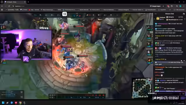 03:13:37Nach einer weiteren kurzen Pause, in der ein Spieler die Toilette aufsucht, wird über mögliche Champion-Alternativen für das Spiel gesprochen, wie Malphite, Nasus oder Renekton. Es wird die Idee diskutiert, Nasus gegen Garen zu spielen, da dieser im Early Game dominiert werden könnte. Die Spieler wechseln zu einer Diskussion über Essenspräferenzen, wobei der Streamer erwähnt, dass er ein wählerischer Esser ist und kaum Fisch oder bestimmte Gemüsesorten isst. Er erinnert sich an eine ähnliche Diskussion zwischen Fabo und Trimax über Essgewohnheiten. Im Spielverlauf wird eine detaillierte Strategie für die Botlane besprochen, bei der ein Spieler den Prior auf der ersten Wave sichern und dann auf den Outpush warten soll. Die Kommunikation im Team ist präzise, mit Anweisungen zu Wards, Ganks und dem Fokus auf Objectives wie dem Drake. Es kommt zu ersten Kämpfen, bei denen der Streamer einen Fehler macht und stirbt. Trotzdem bleibt die Stimmung positiv, und es wird betont, dass das Spiel noch nicht verloren ist. Das Team konzentriert sich darauf, die Lanes zu gewinnen und Ressourcen zu sammeln, um später im Spiel die Objectives zu sichern. Es werden weitere Strategien besprochen, wie das Warten auf Ults und das gemeinsame Agieren auf der Botlane.
