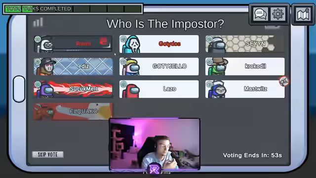 00:47:44In einer späteren Runde wird diskutiert, wer den Kill begangen hat und wo sich die Spieler aufhalten. Es wird spekuliert, dass derjenige, der im Vent sitzt, der Täter ist. Es wird über die Positionen der Spieler diskutiert und versucht, den Täter einzugrenzen. Panne wird verdächtigt, da er sich seit Wochen nicht mehr gemutet hat. Es wird überlegt, wer in Storage ist und ob die Leiche älter sein könnte. Der Streamer droht, die anderen zu 'ficken', wenn sie ihn rausvoten. Es wird überlegt, ob man die Runde highlighten soll. Es wird überlegt, wer die Imposter sind und es wird vermutet, dass es Eldos und Panne sind. Der Streamer beschließt, niemanden zu beschützen, sondern erst seine Tasks zu erledigen. Es wird diskutiert, ob Eli als Imposter im Mating gefickt hat. Es wird festgestellt, dass Zane anscheinend Live-Reporter ist. Es wird überlegt, ob es sich um einen Shapeshifter handelt. Es wird versucht, Pan zu beschützen. Es wird festgestellt, dass Eli sehr gut gespielt hat. Es wird über die Positionen der Spieler diskutiert und Kroko wird verdächtigt. Es wird überlegt, ob man skippen soll, da es keinen 100% Call gibt. Es wird überlegt, wer noch Tasks hat und es wird diskutiert, wer Saints saven kann.