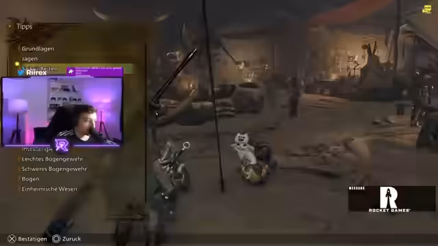 01:15:20Der Streamer wundert sich, warum er so viele Tränke hat und das Game deutlich einsteigerfreundlicher geworden ist. Er will nicht zum Trainingsbereich. Er probiert den DLC aus, aber es geht nicht. Er schließt drei Quests auf Rang 1 ab und fragt sich, warum japanische Leute in seiner Lobby sind. Er findet es nice, dass die Arbeiter einen fließenden Übergang gemacht haben. Er will die Mission nicht abschließen, weil er erkunden will. Er tötet die Monster und nimmt Honig mit. Er erklärt, dass man selber wissen muss, wann das Monster tot ist. Er spielt das Tutorial und Honig kann man nicht genug haben. Der Besuch kommt ungelegen und die Saikri sind von höchstem Wert. Er kritisiert, dass er den Tigrex nicht bekämpfen darf. Er bekommt neue Items und das Versorgungslager ist die Zentrale der Anlaufstelle.
