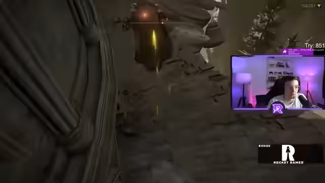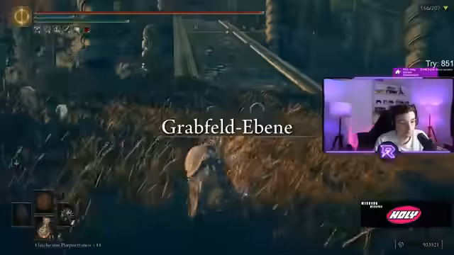 01:38:45Der Streamer hat 160 von 165 Bosse besiegt, aber immer noch das Item 'Curse Mark of the Death' nicht gefunden, das er für die Vollendung der Questline und für den Zugang zu Tiefwurz benötigt. Er gibt zu, dass dies bei RandomizerRuns manchmal vorkommt und dass er ein bisschen Glück braucht. Er erwähnt auch, dass er in einem früheren Run für alle 207 Bosse 6 Stunden gebraucht hat, während er diesmal bei 160 Bossen bereits 11 Stunden ist.