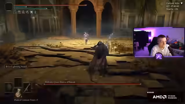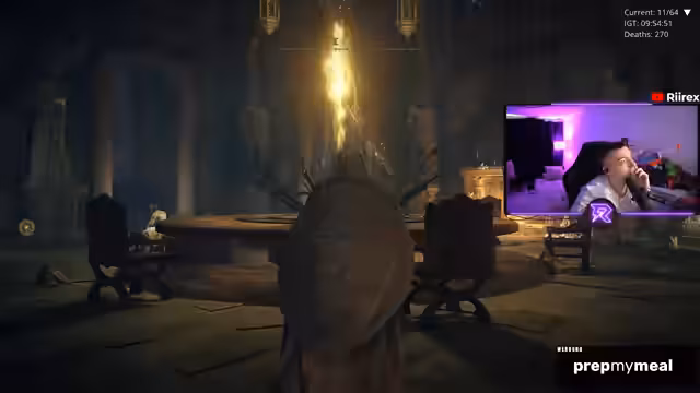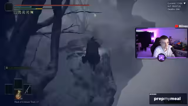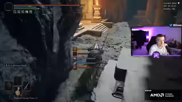 00:50:26Der Streamer entwickelt eine Strategie, um die Gegner in einem schwierigen Gang zu umgehen, indem er sie unter sich lockt und dann von der anderen Seite zurückläuft. Obwohl er befürchtet, dass die Gegner despawnen könnten, funktioniert der Plan teilweise, da die schlimmsten Gegner verschwunden sind. Er erreicht eine Gnade, läuft jedoch versehentlich daran vorbei, was ihn frustriert. Die Verfolgung durch den Gegner Gaius durch den Gang erweist sich als besonders unglücklich. Trotz der Rückschläge bleibt er entschlossen, den Weg zu meistern, da sein Ego es ihm nicht erlaubt, aufzugeben. Er kritisiert die Mechanik der unsichtbaren Assassinen, die ihn trotz Ausweichrollen treffen können, und die hohe Aggro-Reichweite der Gegner. Nach weiteren Versuchen erreicht er schließlich eine Gnade und ein wichtiges Item, das "Set of Marika" und ein "Seal".