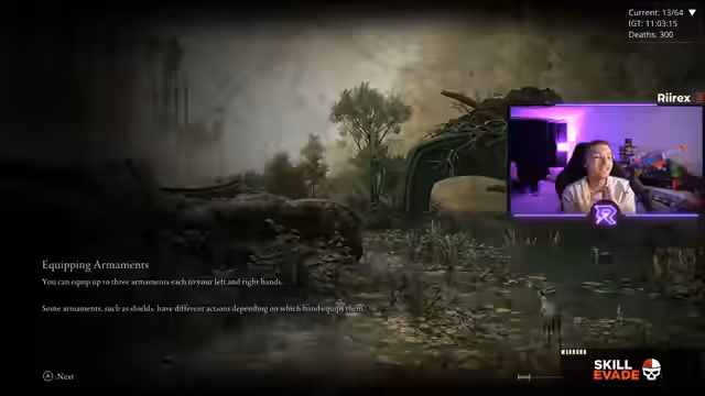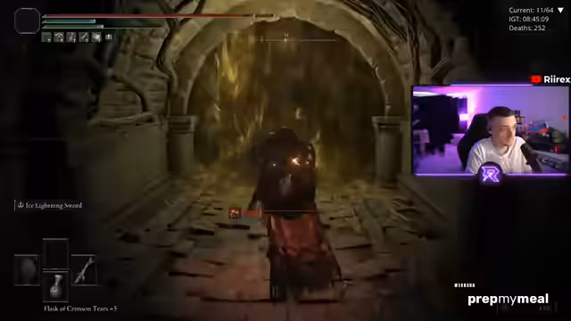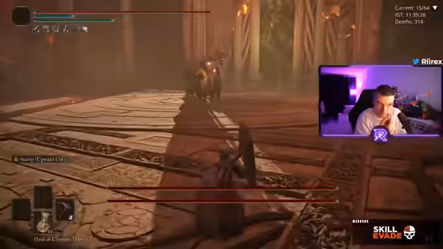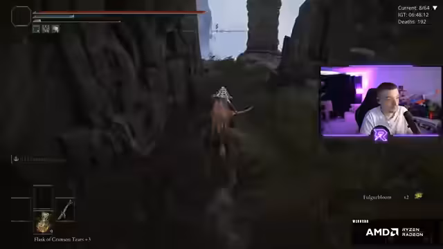 00:10:13Nachdem der Streamer einen Dungeon namens "Reddy's Domain" als vergleichsweise entspannt empfunden hat, in dem er einen Talisman zur erhöhten Heilung (Crimson Sea Talisman) erhielt, hofft er, dass ein weiterer Dungeon, der den begehrten Schild-Talisman verspricht, ebenfalls machbar sein wird. Er stellt fest, dass die Gegner in diesen Dungeons überraschend leicht zu besiegen sind, was ihn dazu verleitet zu glauben, dass die Mod möglicherweise nicht so sadistisch ist, wie ursprünglich angenommen. Er besiegt zwei Bosse und findet den Schild, der die Ausdauerregeneration beschleunigt, was er als äußerst nützlich erachtet. Diese Entdeckungen stärken seine Zuversicht, dass er die Mod heute noch beenden könnte, auch wenn er sich bewusst ist, dass seine aktuelle Waffe langsam an Effektivität verliert und er bald eine Alternative finden muss.