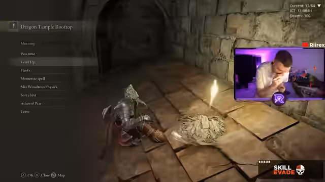 00:00:51Der Stream beginnt mit dem Song 'Ready to fall'. Der Streamer begrüßt die Zuschauer und erklärt seine Zeitzone. Es wird angekündigt, dass es sich um den zweiten Tag des Versuchs handelt, die 'Nightmare Seed' Mod zu bezwingen, bei der bisher 6 Stunden 40 Minuten und 192 Todesfälle verzeichnet wurden. Der Streamer erwähnt Notizen zu möglichen Schlüsselitems wie dem Dragon Skin Talisman und sucht nach Wegen zu bestimmten Gebieten.
