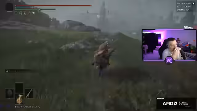 05:31:41Der Streamer findet eine Waffe, die er für stark hält und die im Spiel unterbewertet ist. Sie hat eine passive Fähigkeit, die ihn beim Töten von Gegnern heilt, und hilft ihm, durch besonders schwierige Passagen zu kommen. Gleichzeitig wird der Fortschritt deutlich, da viele wichtige Bosse wie Godfrey, Gideon und Radahn bereits besiegt sind, was ihn motiviert, trotz der anhaltenden Frustmomente weiterzumachen.