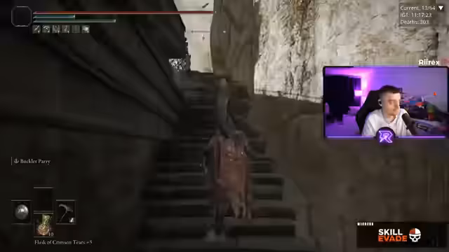 00:02:12Nachdem der Streamer den Weg zur Dragon Skin-Quest gefunden hat, stellt er fest, dass das Gebiet als sehr schwierig gilt. Er erkundet verschiedene Dungeons wie die Redley's Domain und die Blackknife Catacombs. Währenddessen findet er einige nützliche Talismane, insbesondere den Schildrücken-Talisman, den er als einen der wichtigsten im Spiel betrachtet. Der Verlauf ist geprägt von einem konstanten Kampf gegen das Scaling der Gegner und der Suche nach effektiveren Waffen.