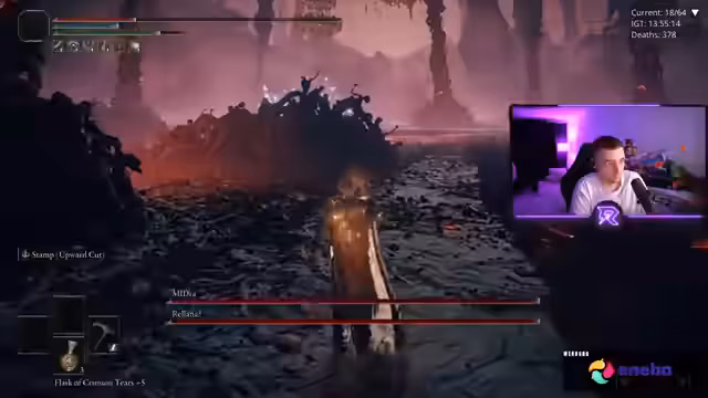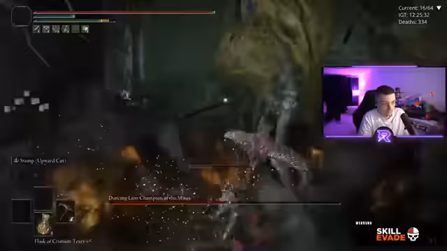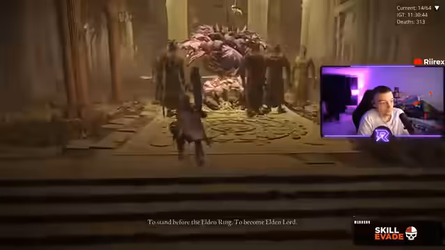 04:33:10Im weiteren Verlauf stehen dem Streamer Lord Ryx und erste Eldenlord-Gegner gegenüber. Lord Ryx ist ein echter Boss, während die anderen Gegner wie ein normaler DLC-Gegner behandelt werden müssen. Der Streamer merkt, dass die Mod nicht so schlimm ist, wie alle sagen, und dass man präzises Gameplay braucht, um durchzukommen.