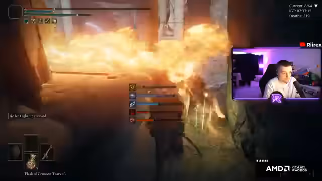 02:34:46Nachdem er eine Stunde lang umsonst gekämpft hat, erreicht der Streamer endlich das Schneegebiet. Er ist erleichtert und hofft, dass es von nun an leichter wird. Er ist überrascht von einer Attacke, die er in Elden Ring noch nie zuvor gesehen hat. Die Mod hält jedoch weiterhin Herausforderungen bereit, wie Gegner, die ihn vom Pferd schießen, und unbesiegbare Assassinen. Er versucht, die Gegner mit gutem Timing und Movement zu umgehen und schafft es, einen vermeintlich sicheren Weg zu finden. Er fragt sich, welche Bosse er als Nächstes besiegen muss, darunter Commander Niall und der Feuerriese, und befürchtet, dass der Feuerriese besonders schwierig werden wird.