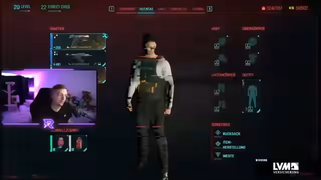 00:21:53Ein bedeutendes Highlight des Streams ist der Fund der ikonischen Waffe „Skippy“, einer experimentellen Machtwaffe mit eingebauter KI. Nach einer kurzen Interaktion akquiriert Matze die Waffe, die zwei Betriebsmodi hat: einen pazifistischen Modus, der nur Bezielen anvisiert, und einen „eiskalten Killer“-Modus, der automatisch auf Köpfe zielt. Matze entscheidet sich für den letzteren und ist von der Effektivivität der Waffe beeindruckt, besonders bei der neutralisierung von Gegnern. Nebenbei erkundet er auch Cyberware-Upgrades und stellt fest, dass seine Ansammlung an Modulen eine automatische Gesundheitsregeneration auslöst, was er als sehr praktisch für den weiteren Spielverlauf empfindet.