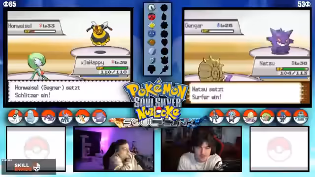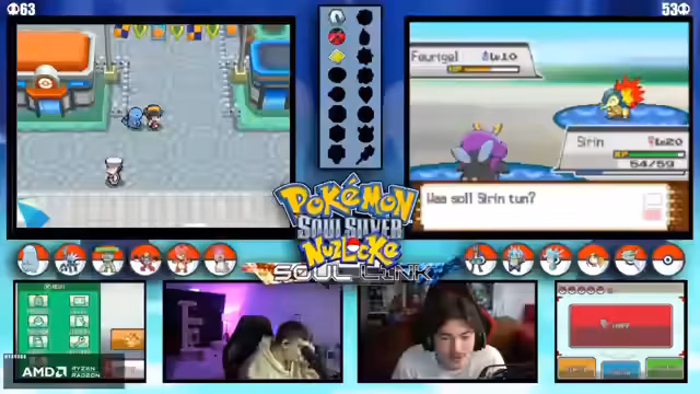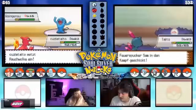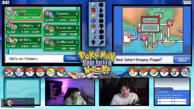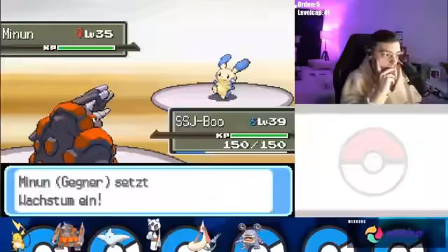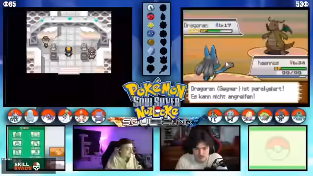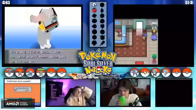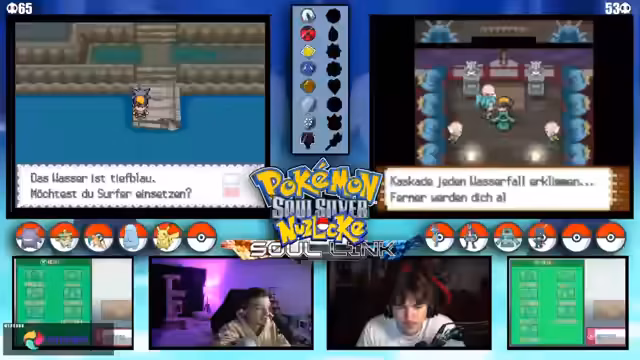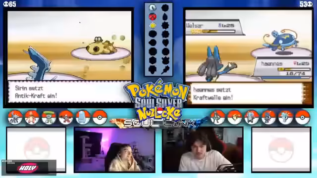04:12:32Es tauchen wiederholt technische Probleme auf, die den Spielfluss stören. Der Streamer und der Co-Streamer müssen ihre DS-Verbindung und Übertragungseinstellungen überprüfen. Neben der Technik werden komplexe Spielmechaniken wie der Level-Cap auf 25 und die Entwicklung von Pokémon durch Items wie den Wassers diskutiert, was die strategische Planung beeinflusst.