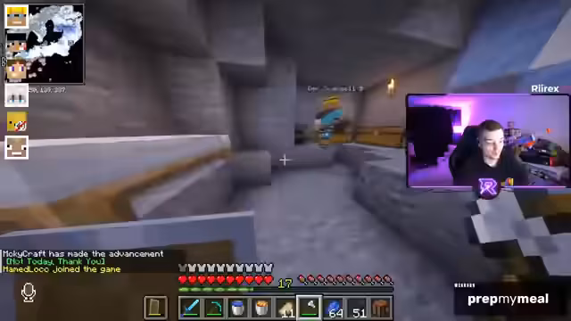 03:30:27Der Streamer betritt eine Höhle und strebt 'Full Deer'-Status an. Er diskutiert die Notwendigkeit von Eisen für Schilde und Essen für das Überleben. Die Höhle wird als lukrativ beschrieben, mit Hinweisen auf mögliche Beute. Gleichzeitig wird die Wichtigkeit von Schutzschilden gegen Gefahren wie Creeper betont. Die Community gibt Tipps zur Erstausstattung, während der Streamer Ressourcen sammelt.