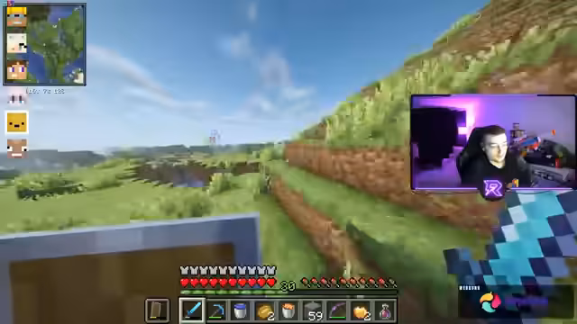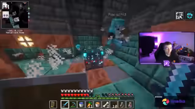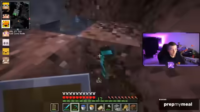 03:44:02Das End-Portal öffnet in zwei Tagen, weshalb Netherite-Vorbereitungen und Gatekeeping-Strategien diskutiert werden. Der Streamer gibt Tipps zum Diamanten-Finden in der Deepslate-Ebene (Y -58) und erklärt Minimap-Einstellungen für 'Cave-Mode'. Er plant TNT-Farmen für spätere Aktionen. Hinweise auf eine Ancient City unter seinem Berg werden gegeben.
