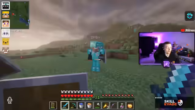 04:19:12Kommunikationsprobleme mit Eldos dominieren die Diskussion, während Trimax weiterhin Spieler tötet. Der Streamer bemerkt die späte Ankunft von Spielern wie Elie. Es entstehen Debatten über die Einhaltung von Regeln bezüglich Subs und PvP. Trimax wird kurzzeitig von Noreax erledigt, aber neue Spannungen mit Spielern wie Max entstehen. Der Streamer sucht nach Lösungen für technische Probleme wie Chunk-Grenzen.