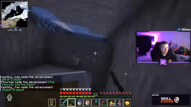 08:53:03Nach den Trial-Chamber-Erfolgen bereitet sich das Team auf weitere Aufgaben vor. Sie diskutieren die Verzauberung neuer Ausrüstung, Farm-Strategien für Experience und den Umgang mit begrenzten Inventarplätzen. Es gibt Planungen für den Bau spezialisierter Farms (z.B. für Totems) und Diskussionen über die Verteilung von Ressourcen innerhalb des Teams. Gleichzeitig tauschen sie sich über mögliche nächste Ziele auf dem Server aus.