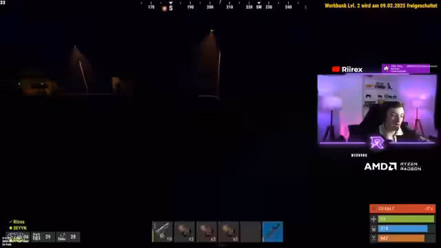 08:53:42Es wird an der Basis gearbeitet, Wände und Stützrahmen werden platziert. Es wird über die Anordnung der Betten und Kisten diskutiert, um eine effiziente Nutzung des Raumes zu gewährleisten, besonders im Hinblick darauf, dass es ein Verwirrungsraum geben soll. Der Plan ist, einen separaten Raum für die Lagerung von Loot einzurichten und die Basis mit Stein zu verstärken, um sie sicherer zu machen. Es wird auch überlegt, ein Silo zu bauen. Es werden Materialien wie Metallfragmente benötigt, und es wird eine 'Schummelkammer' erwähnt, in der Pläne geschmiedet werden. Es wird überlegt, wie man die Basis am besten upgraden kann, um sie vor Angriffen zu schützen. Es wird die Idee eines Solo-Silos geäußert und dafür die notwendige Ausrüstung wie Blue Key Card und Verbände vorbereitet. Es wird über die Notwendigkeit gesprochen, die Türrahmen zu verbessern, um die Basis sicherer zu machen. Es wird überlegt, ob ein Silo gemacht werden soll und die dafür benötigte Blue Key Card wird besorgt. Es wird ein Bike für die Fortbewegung genutzt und es wird Wert darauf gelegt, dieses nicht zu beschädigen.