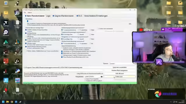 00:11:20Der Stream beginnt mit der Begrüßung des Publikums. Der Streamer stellt die Hauptaufgabe des Tages vor: eine 207-Boss-Challenge in Elden Ring. Dabei müssen alle Bosse, sowohl aus dem Hauptspiel als auch aus dem DLC, ohne ein einziges Mal zu sterben besiegt werden. Die Bosse, Items, Waffen und Shops sind dabei vollständig randomisiert. Als Bestrafung im Falle eines Scheiterns wird ein Tattoo mit der Aufschrift 'Lord Limgrave' auf dem Zeigefinger angekündigt. Als zusätzliche Regel muss der erste Boss eines Gebiets getötet werden, damit der Run für dieses Gebiet offiziell startet.