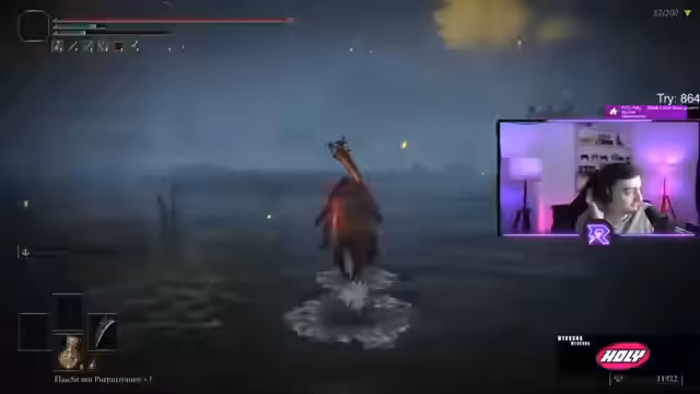 04:53:09Der Streamer arbeitet an seinem Randomizer-Run und sammelt Items wie 'Drachengrooscher Talisman' und 'Curse Mark of Death'. Er tötet den Boss Limgriff und ist nun bei Level 37, während er noch 8 Bosse in Limgrave fehlen. Sein Ziel ist es, mindestens einen sehr schweren Boss ('Brecher') in dieser Region zu finden, um den Run spannender zu gestalten. Er diskutiert mit dem Chat über strategische Gegenstände wie 'Holy'-Waffen, die gegen bestimmte Nacht-Bosse sehr effektiv sind.