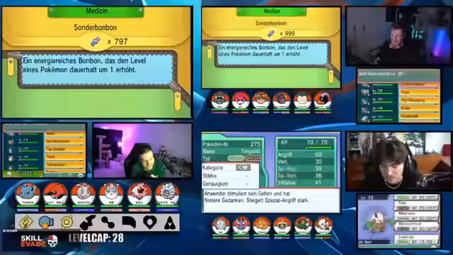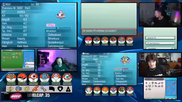 04:22:01Das Erreichen des Level-Caps 35 führt zu einer Neuordnung des Teams, da viele Pokémon nun ihre Endentwicklungen erhalten. Ein heftiger Konflikt entsteht, als ein legendäres Pokémon im Kampf getötet wird. Dies führt zu einem Streit über die Schuldfrage und die Regeln, da die Verlustregel einen 'Strich' zur Folge hätte und das den Verlauf des Nuzlocke-Runs stark beeinträchtigen würde.